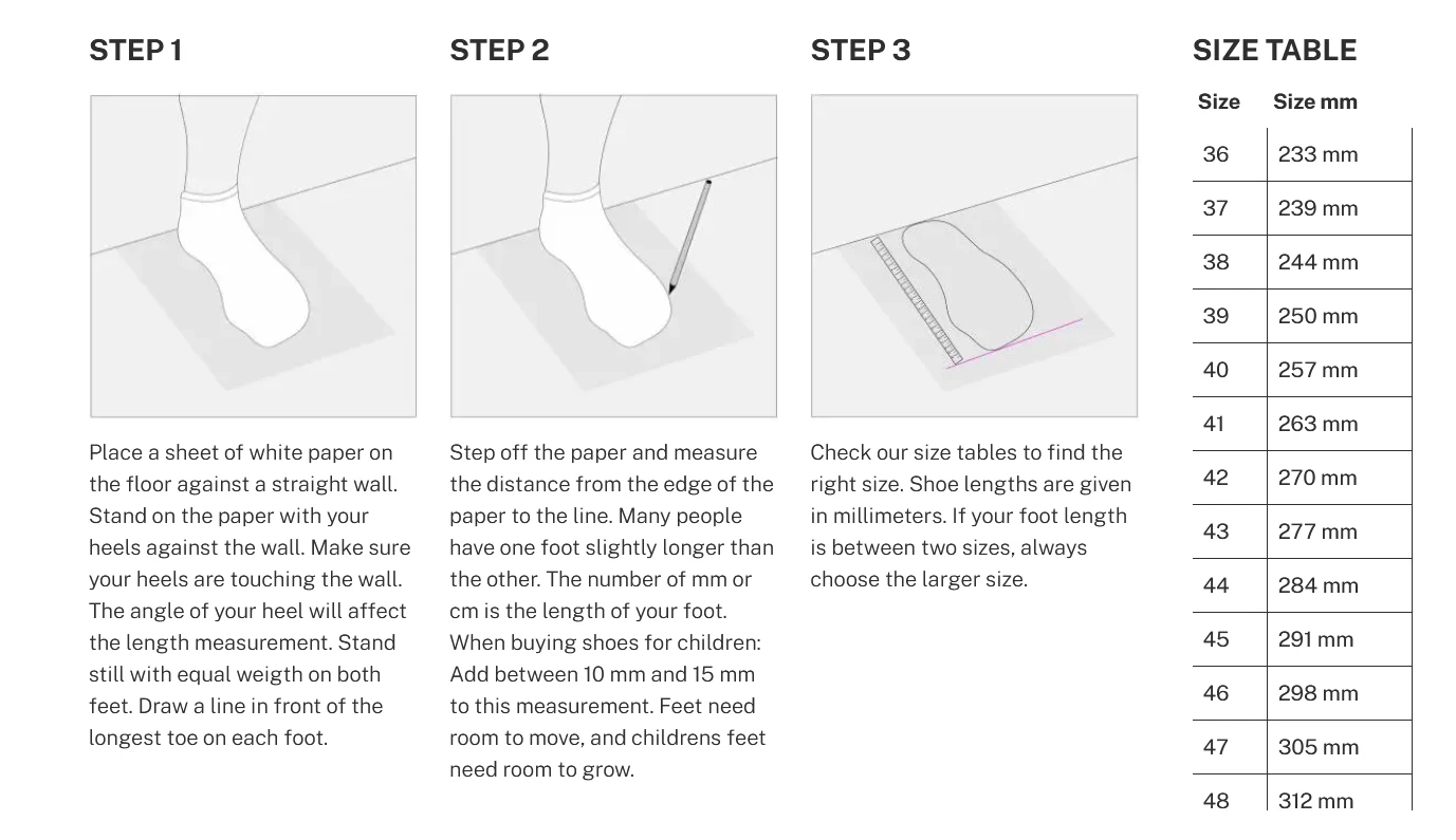 Pohja on ekstra paksu ja antaa erinomaisen eristyksen ja pidon jäällä ja lumella. Kengissä on laajempi tila varpaille, sillä ahtaasti istuva kenkä voi johtaa pakkasenpuremaan.
