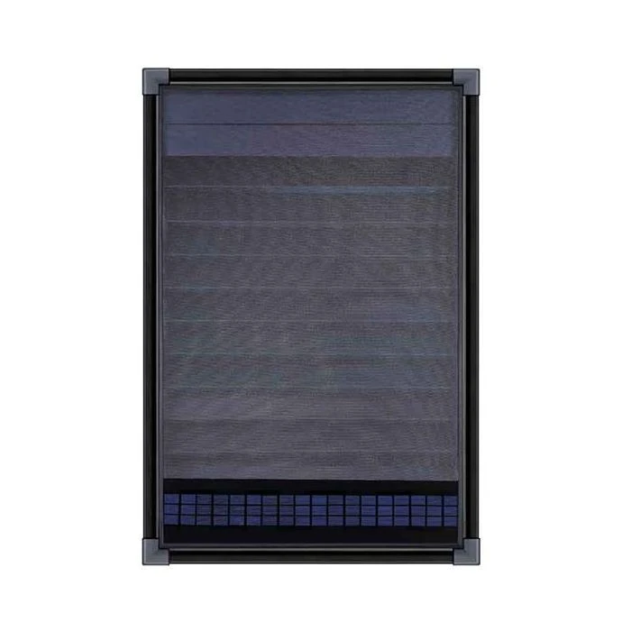 AirPlus aurinkoilmalämmitin saa tarvitsemansa sähkövirran aurinkopaneelista.